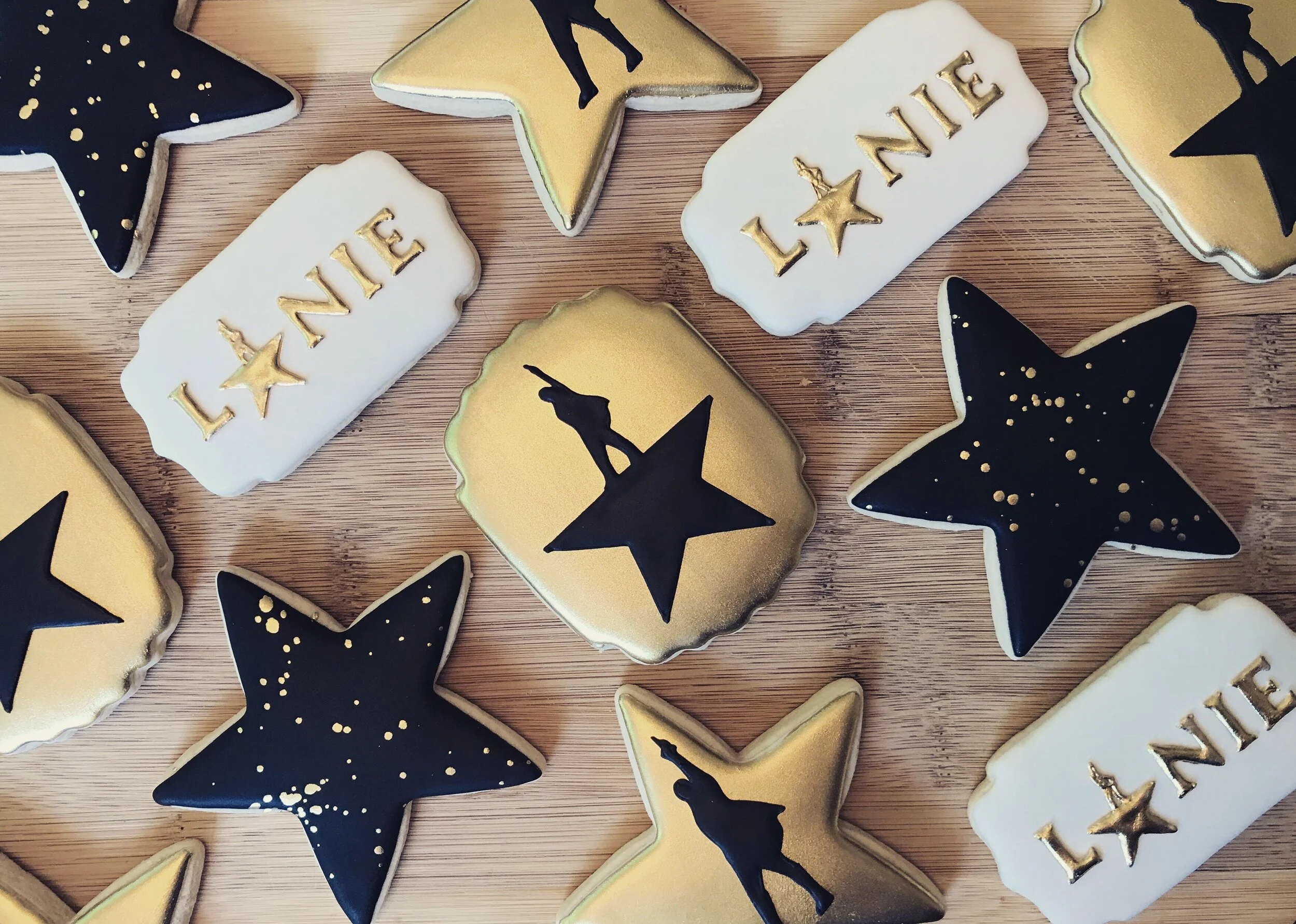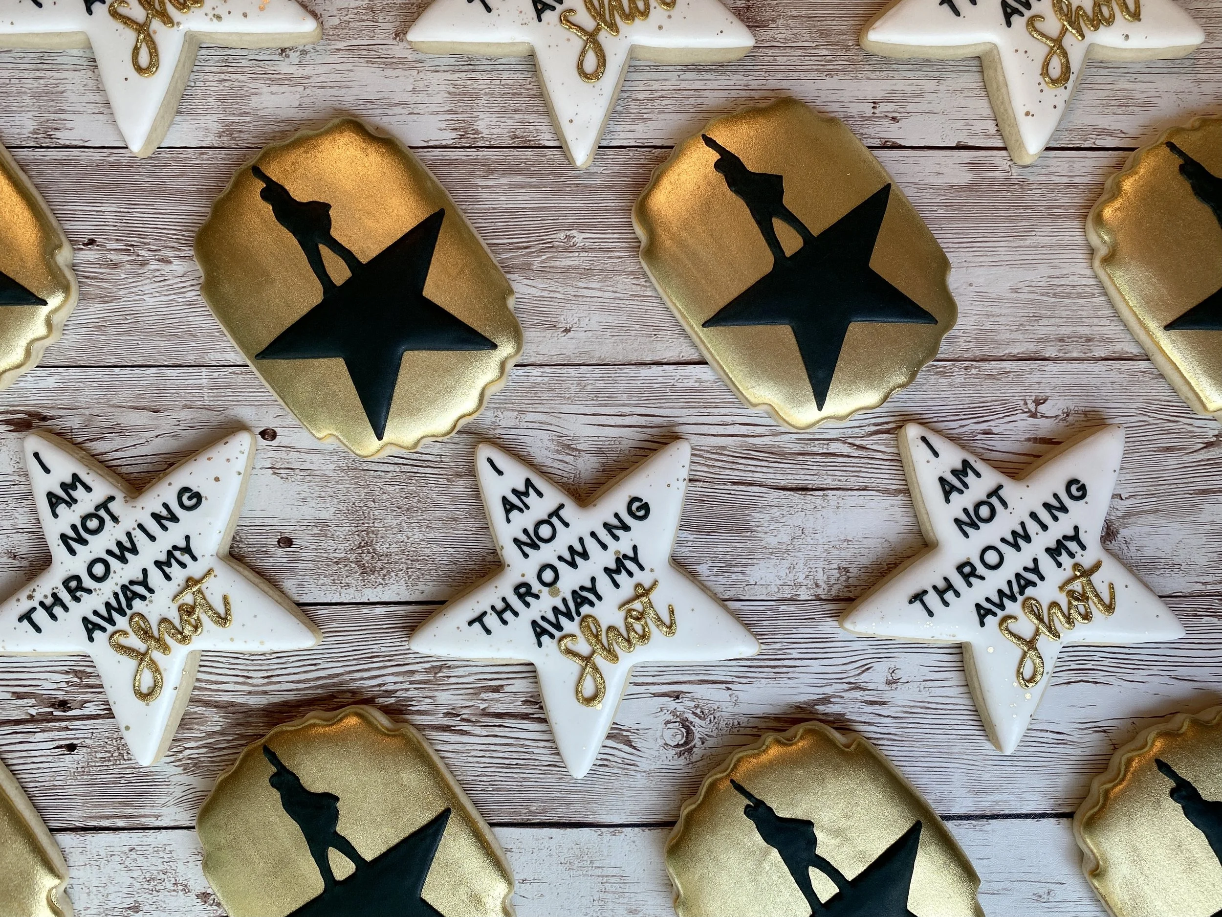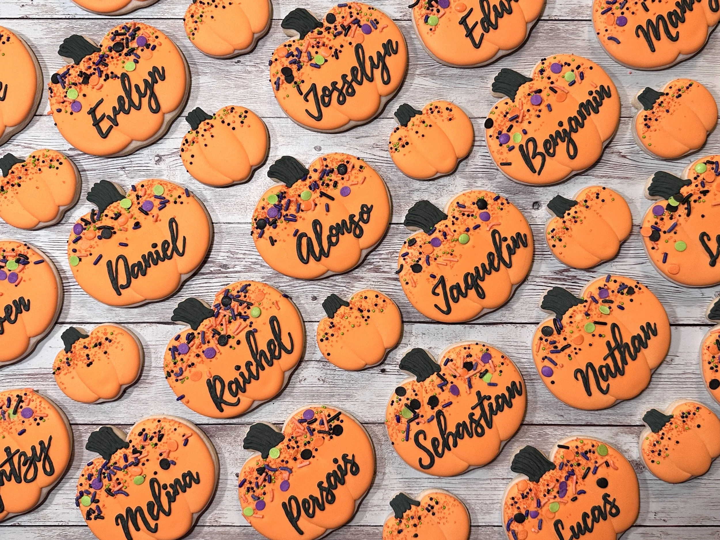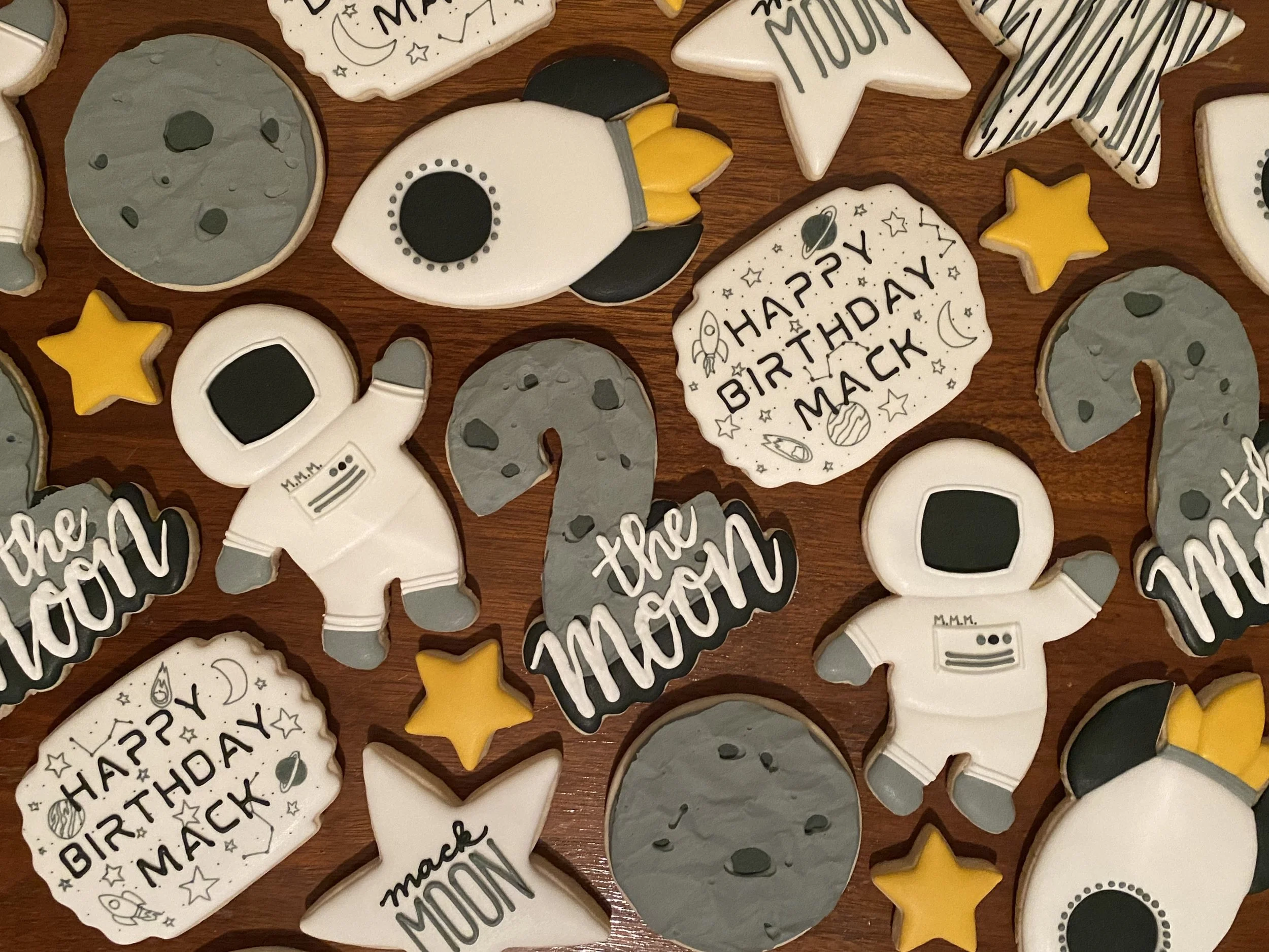 Cookies start at $50/dozen. Extra charges will be applied to cookie sets that are very intricate, require stencil work, or use more than four colors, as well as sets with gold, silver, or rose gold details. Extra charges will also be applied to orders requesting that cookies be individually wrapped.