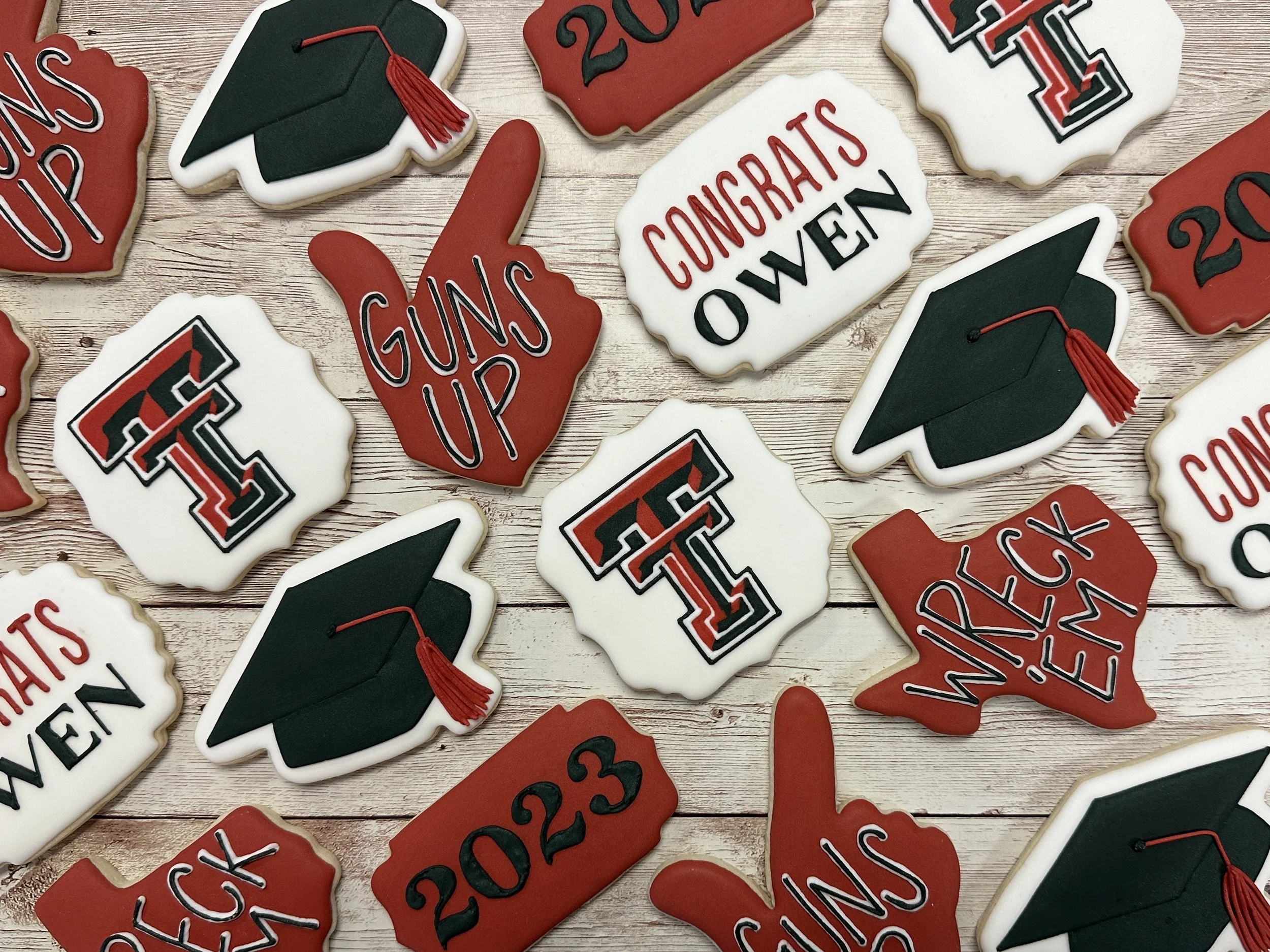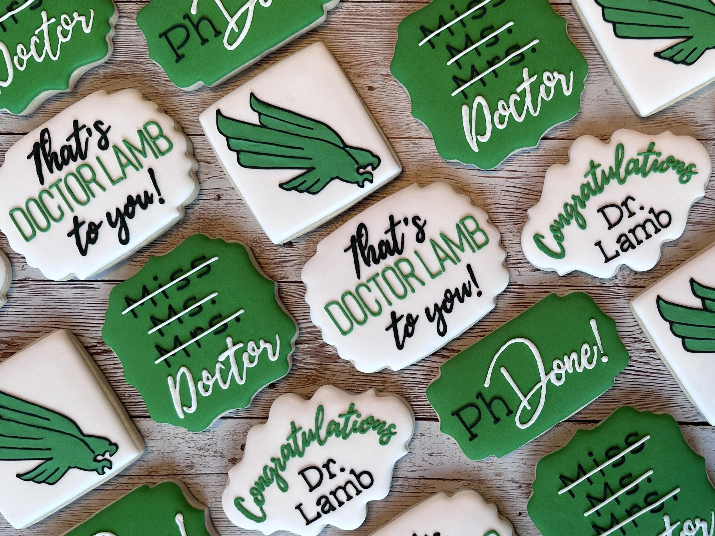 When requesting an order, please include the date of your event, an estimate of how many cookies you need, any specific design ideas you have, and whether you will pick them up (Fort Worth, Texas, 76179) or you will need them delivered/shipped (fees will be applied).